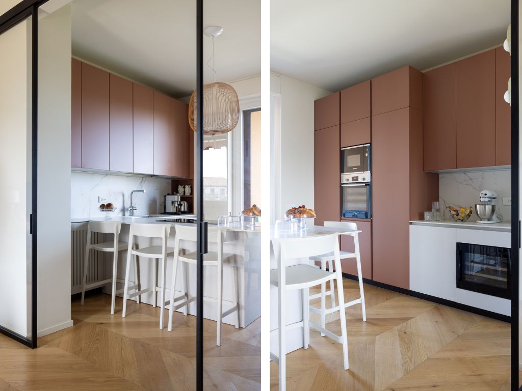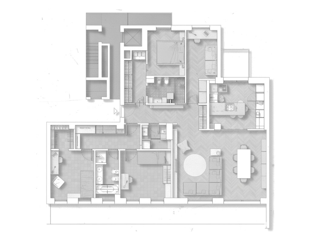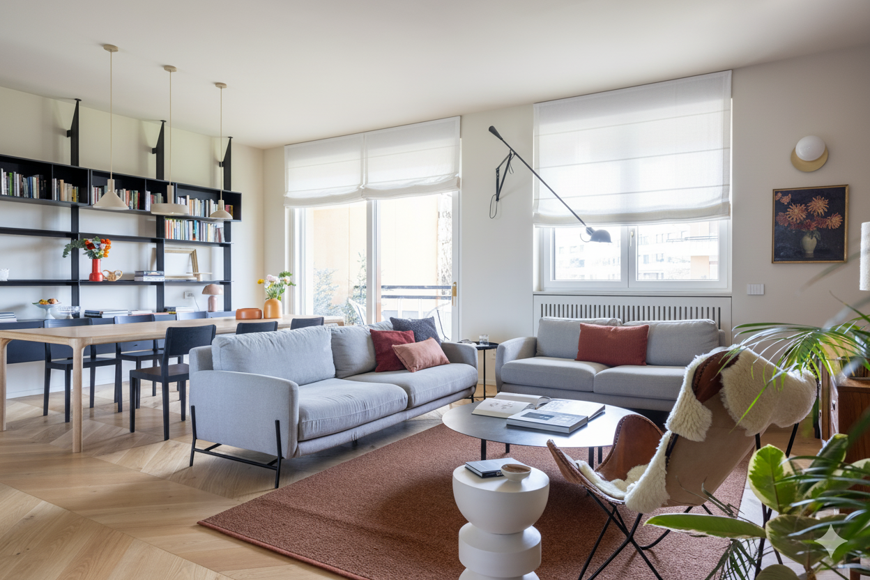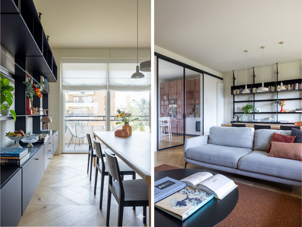L'appartamento di 150 mq, situato in un contesto anni '60, ospita una famiglia di quattro persone: i genitori e i loro due figli. Le esigenze della famiglia richiedevano uno spazio che fosse funzionale per le dinamiche dei bambini e pratico per la vita quotidiana dei genitori.