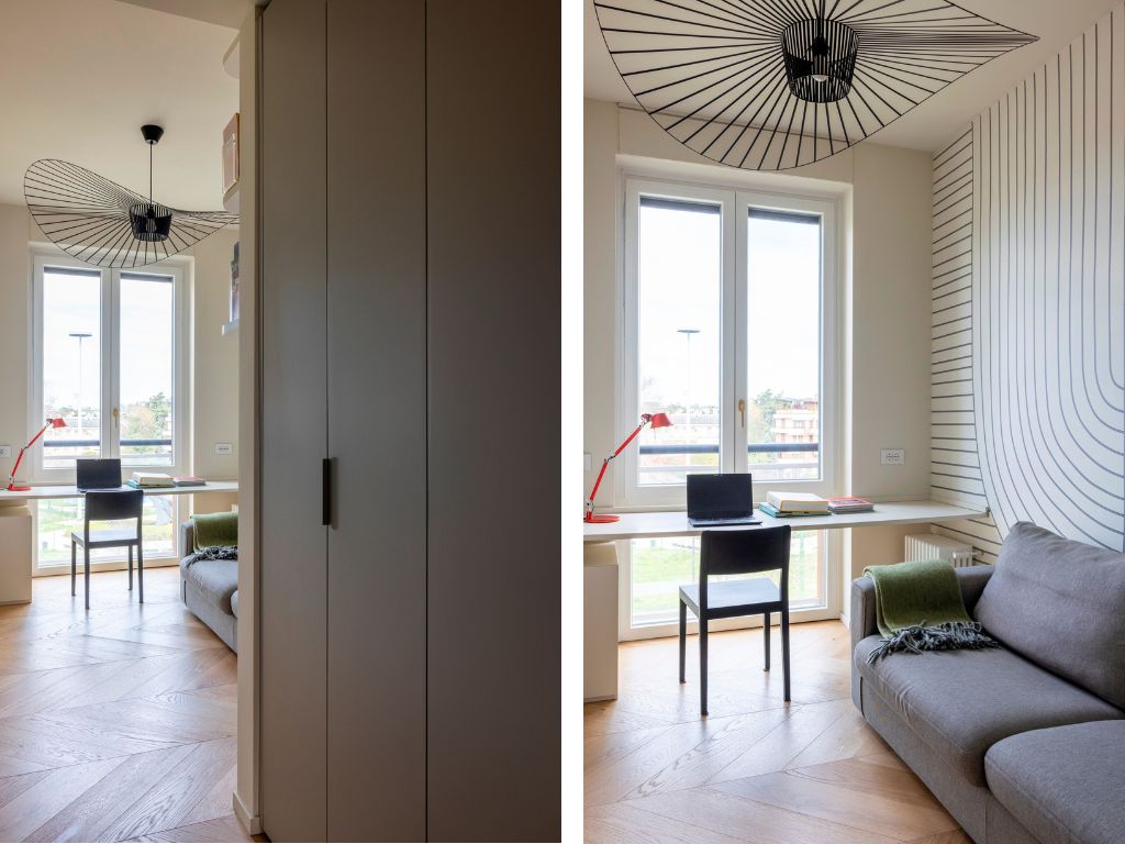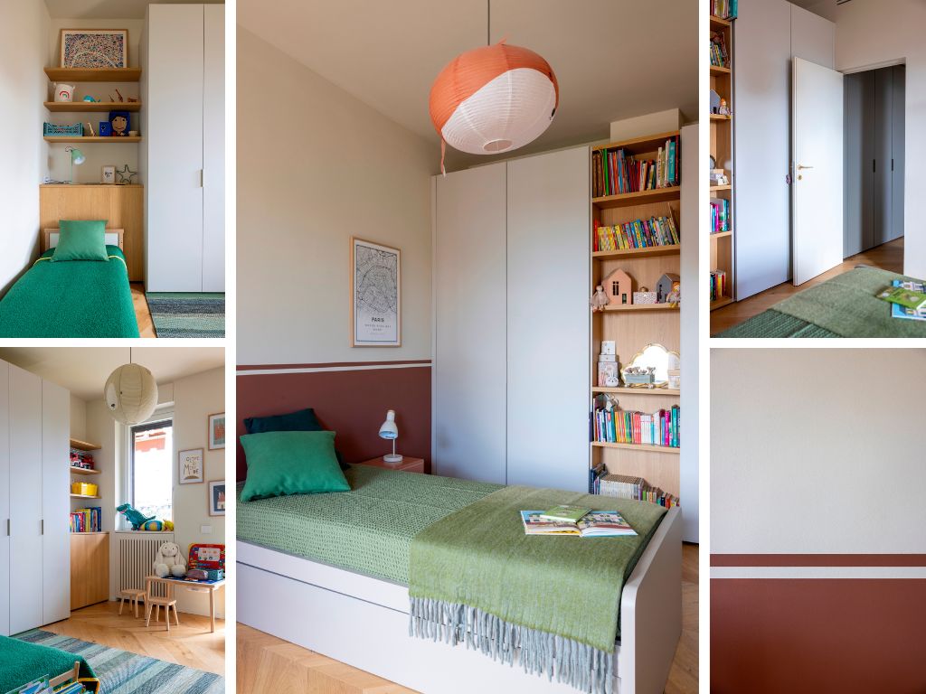 Le stanze sono progettate per rispecchiare le necessità di ognuno, creando un ambiente armonioso e funzionale sia per i momenti di gioco dei bambini che per il relax e il lavoro dei genitori.