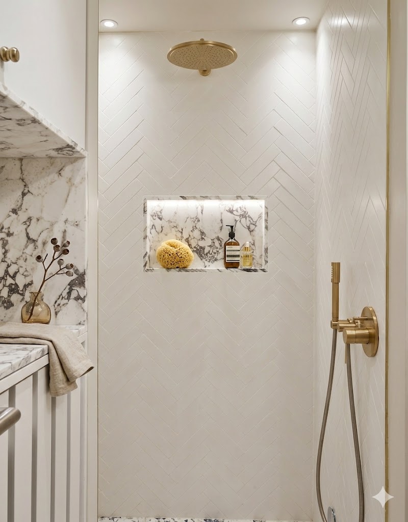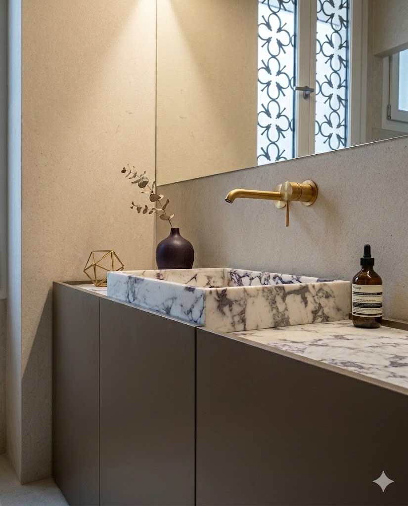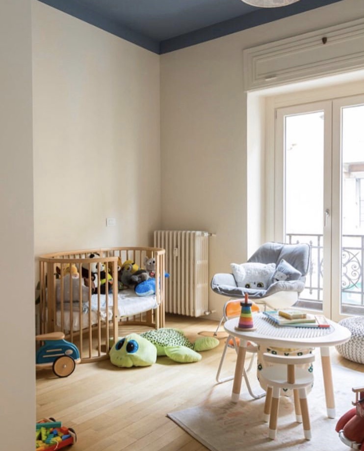 Nella zona notte, le stanze ampie garantiscono comfort e spaziosità, ma i veri protagonisti della casa sono i bagni, ognuno unico nel suo genere. Il primo bagno è realizzato in marmo di Carrara, con piastrelle blu alle pareti che conferiscono personalità. Il secondo bagno, anch’esso con lavabo in marmo, presenta mobili e muri verdi. Infine, il terzo bagno, caratterizzato da toni delicati ed eleganti, offre un lavabo e dettagli nella doccia in marmo con venature viola scure, creando un’effetto scenografico e raffinato.