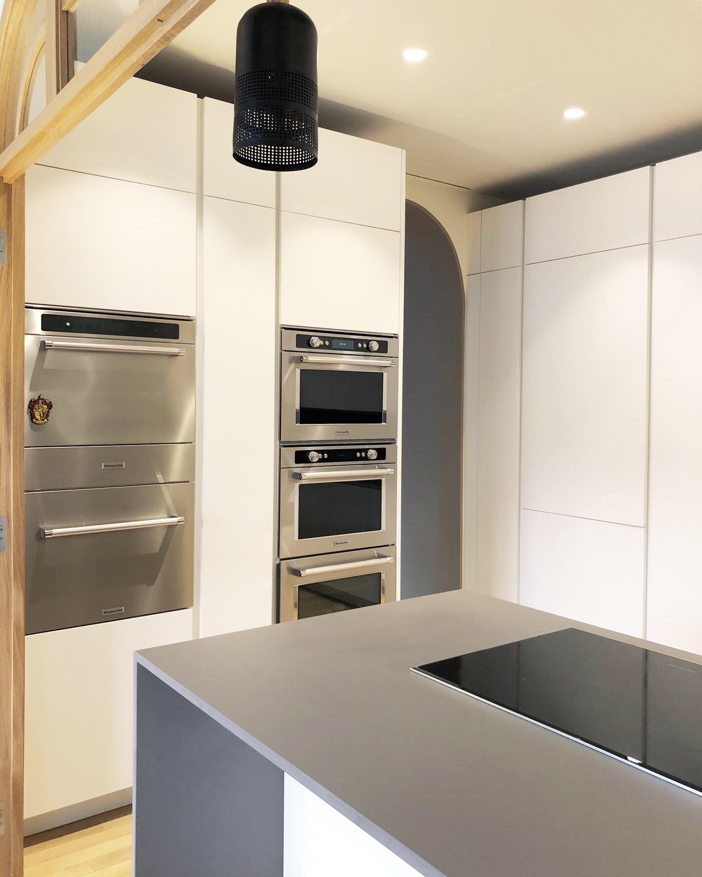 La zona giorno è caratterizzata da una cucina divisa da una struttura su misura in legno e vetro, che non solo svolge una funzione pratica ma arricchisce anche l’ambiente con il suo design raffinato. Questo elemento di separazione aggiunge un tocco di eleganza e modernità, mantenendo al contempo la fluidità dello spazio.